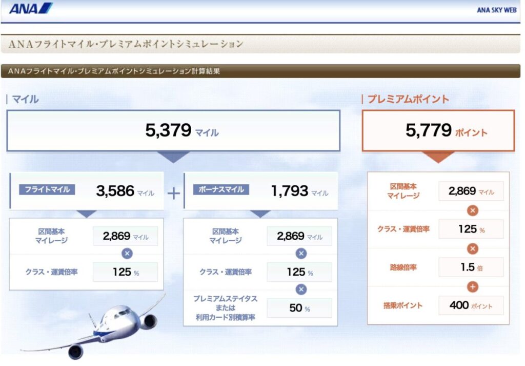一フライトでもプレミアムポイントとマイレージが5,000以上獲得できるのも効率的です。