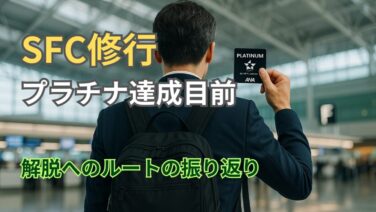 SFC修行【SFC修行’25】プラチナ達成目前!解脱ルートを振り返る 2025年、ライフソリューションを活用してSFC修行のプラチナステータス達成を目指す過程をリアルに記録した体験談ブログです。出張や旅行を活かしたプレミアムポイントの獲得術、生活をANAに寄せた工夫、400万円決済の突破口まで詳しく紹介。SFC修行のプラチナステータスを狙う方に役立つ実践情報が満載 2025.09.21SFC修行