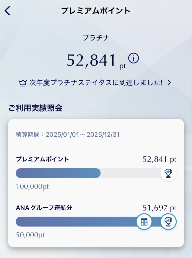 つまり、LS 方式の3条件はすべてクリア済みで、来年 2026年4月にはプラチナステータスを獲得できることが確定していました。